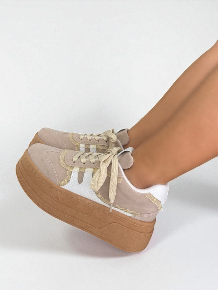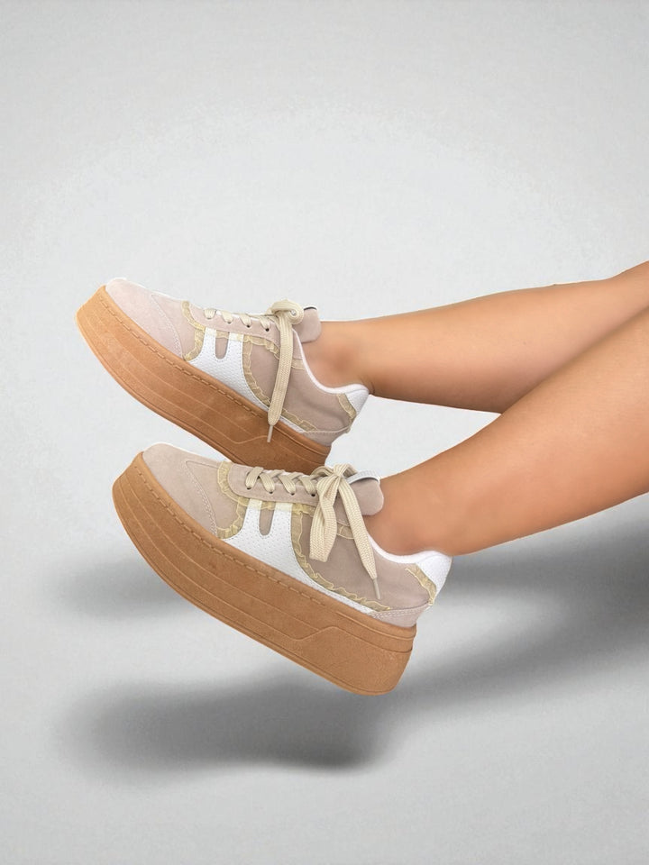 HANNA es un zapato deportivo para dama que combina comodidad y estilo. Diseñado con un capellada suave y material externo sintético, ofrece una sensación suave al tacto y una apariencia elegante. La suela de PVC de 5 cm proporciona un soporte estable y la tela forrada asegura una sensación transpirable.