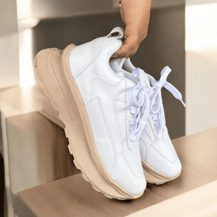 DAKOTA es un zapato deportivo para dama que combina comodidad y estilo. Diseñado con un capellada suave y material externo sintético, ofrece una sensación suave al tacto y una apariencia elegante. La suela de PVC de 5 cm proporciona un soporte estable y la tela forrada asegura una sensación transpirable.