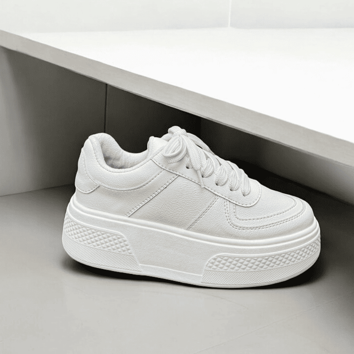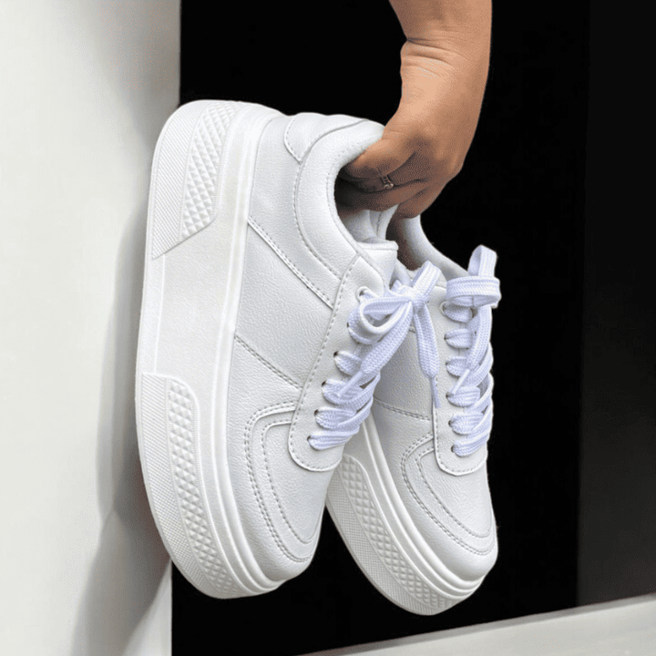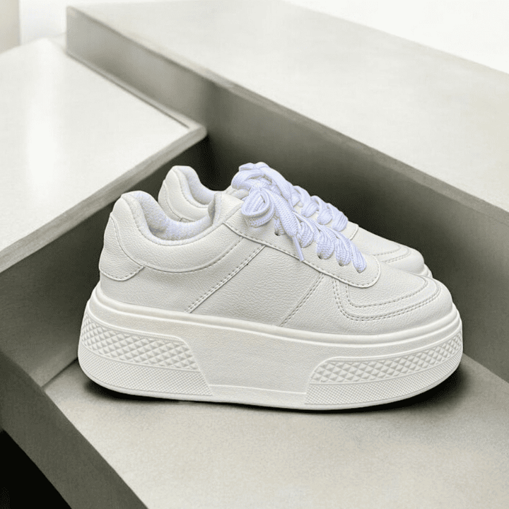 EVA es un zapato deportivo para dama que combina comodidad y estilo. Diseñado con un capellada suave y material externo sintético, ofrece una sensación suave al tacto y una apariencia elegante. La suela de PVC de 5 cm proporciona un soporte estable y la tela forrada asegura una sensación transpirable.