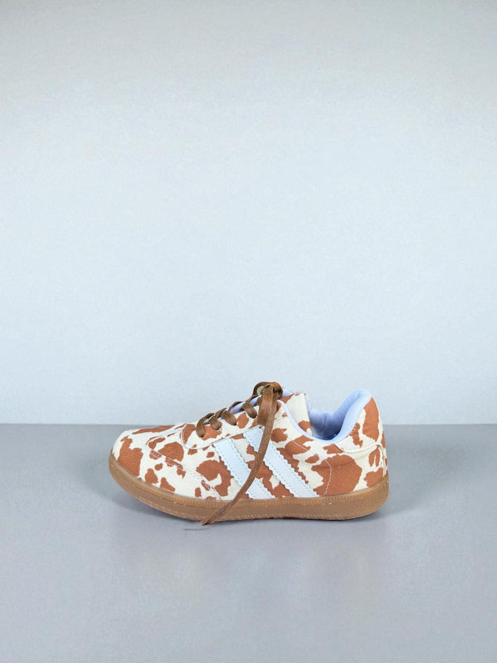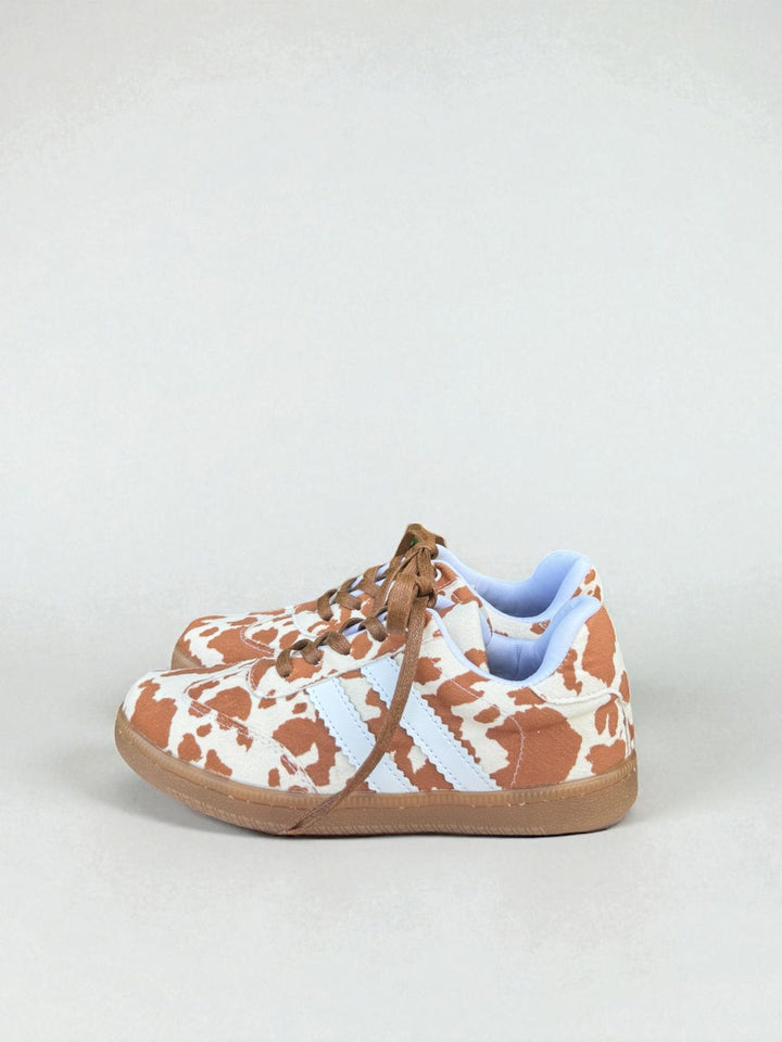 Unos tenis deportivos inspirados en el irresistible estilo cow print, con suela baja, cocidos a mano y tan livianos que sentirás que caminas sobre nubes.